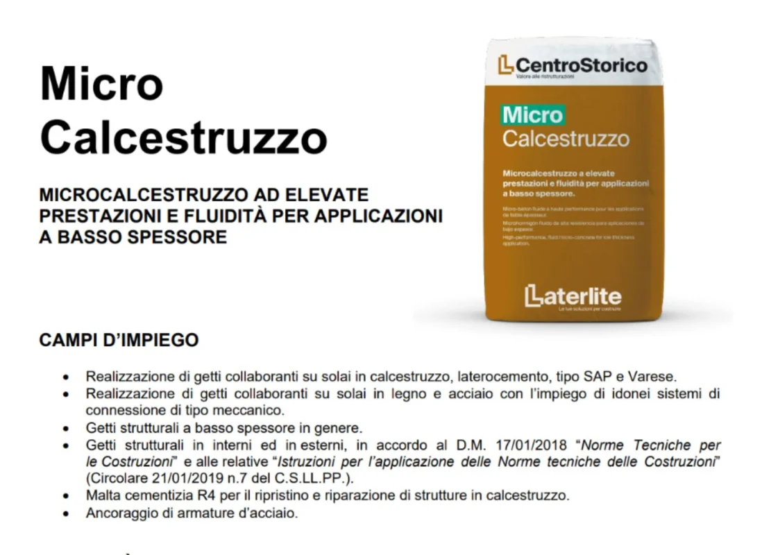 MICRO è il microcalcestruzzo studiato specificatamente per il la realizzazione di getti collaboranti su solai in laterocemento,  calcestruzzo, “SAP” e “Varese”.