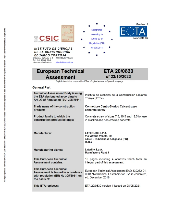 Laterlite SpA si configura come fornitore di prodotti destinati ad uso professionale, il cui impiego e verifica delle idonee condizioni operative è di completa responsabilità dell’utilizzatore (come indicato nella presente scheda tecnica di prodotto).