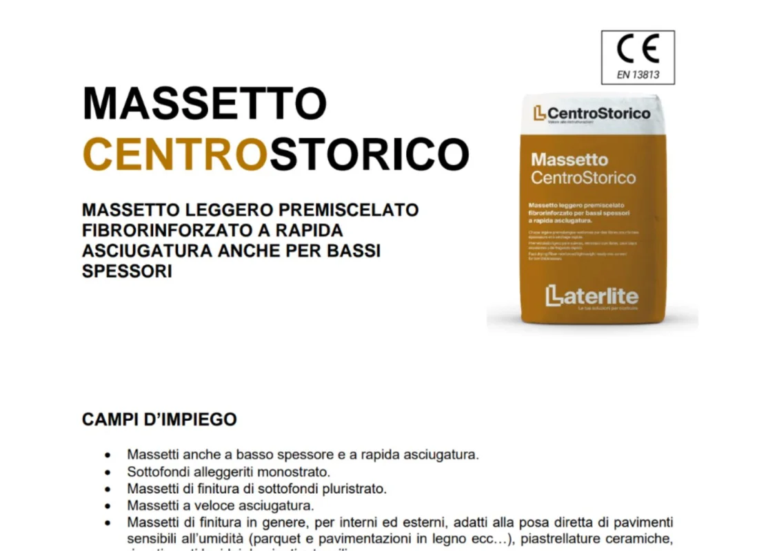 Massetto CentroStorico è il massetto leggero premiscelato fibrorinforzato a rapida asciugatura anche per bassi spessori.