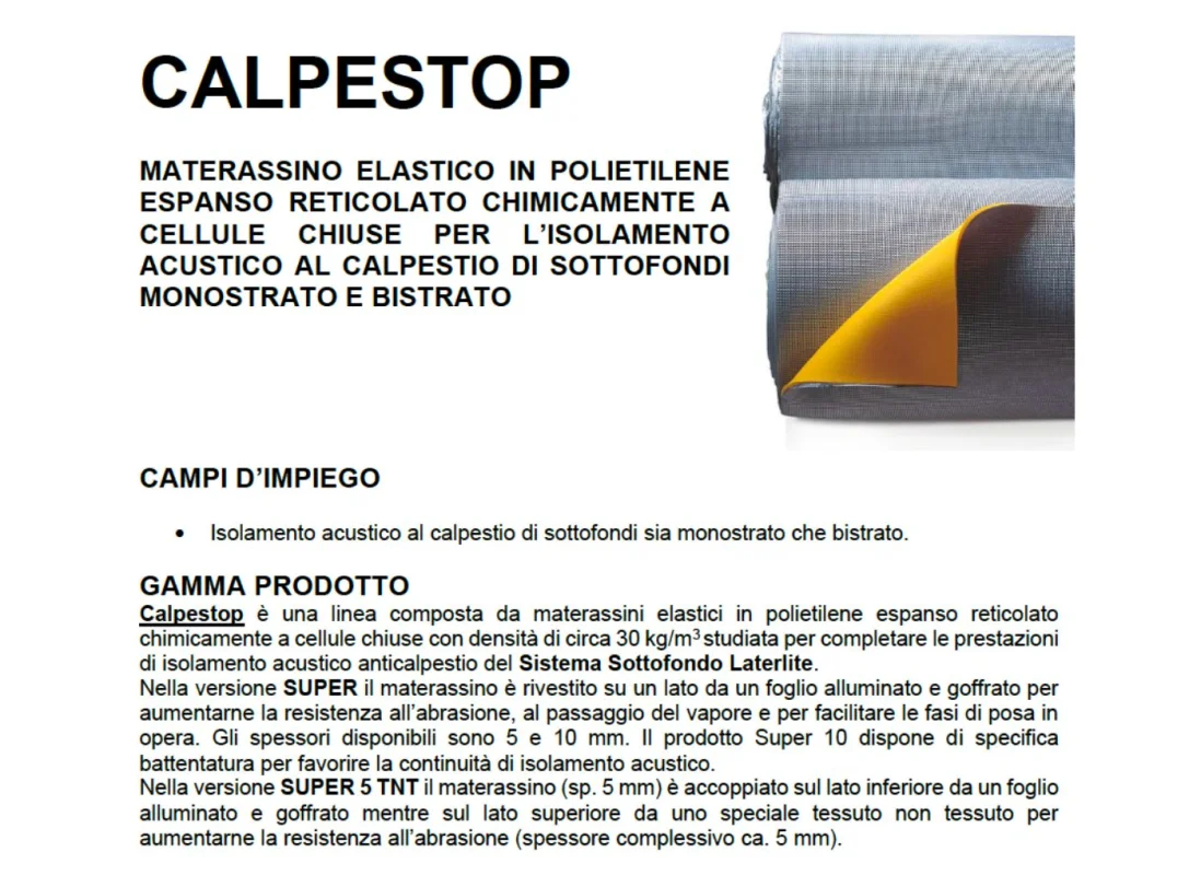 Con l’inserimento del materassino Calpestop è possibile progettare soluzioni conformi alla Legge 447. Ad esempio per:
